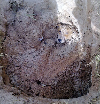 Lucky: Rescue workers had to dig for five feet below ground in cape Town to find the stray dog, luckily the stray was still alive when he was foundsource: dailymail