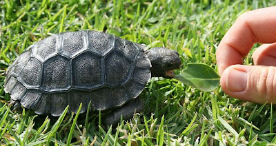 'Our Galapagos tortoise are responsive to bright coloured, edible flowers and fruit, such as roses, hibiscus, grapes and watermelon. But just like any youngster we ensure the hatchling eats all the veggies first.'